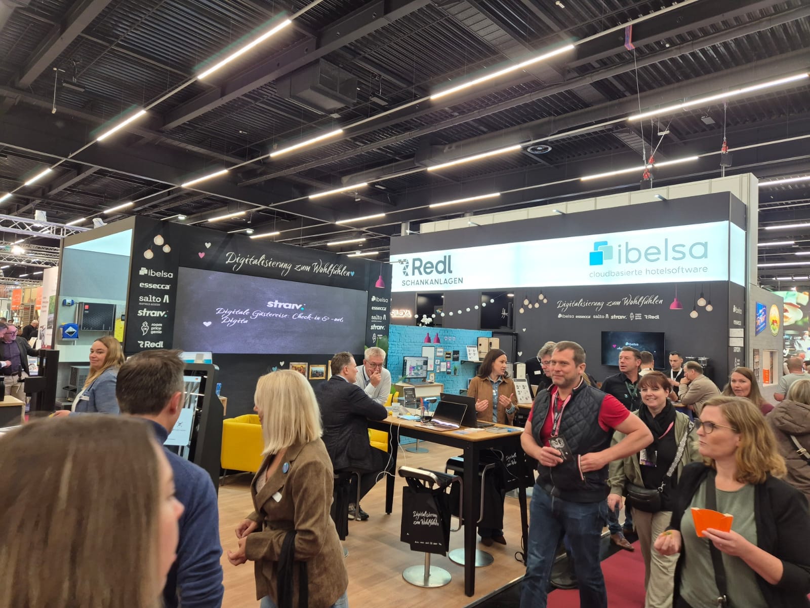 • Stand 10-1127- ein Partnerstand, der die digitale Zukunft der Hotellerie in den Mittelpunkt stellte: mit ibelsa (Cloud-PMS für Hotels), Essecca (Sicherheitstechnik/Gebäude-Digitalisierung), Salto (Zutrittslösungen), Straiv (Digitale Guest Journey), Room Price Genie (Revenue Management System) und REDL